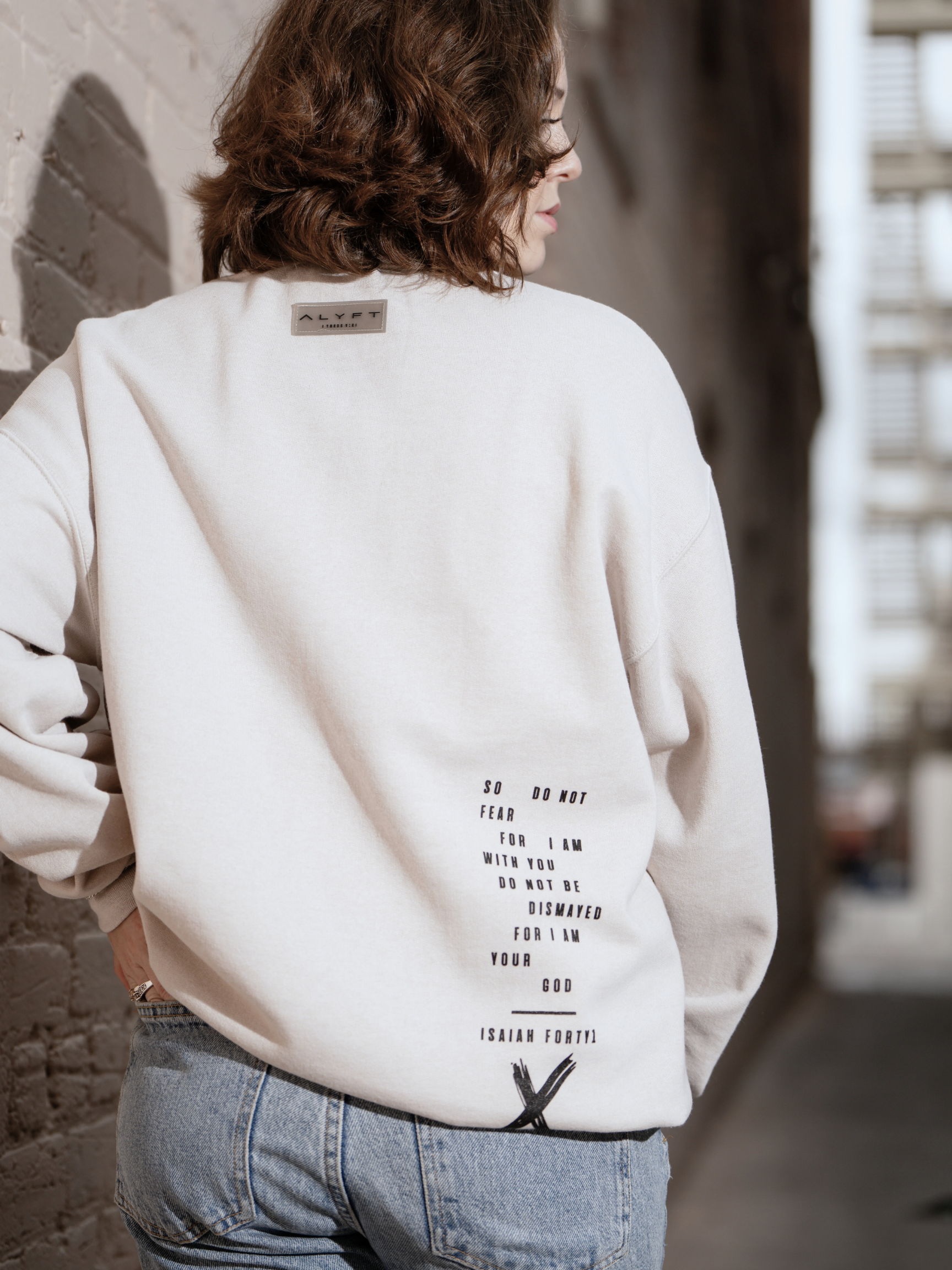 The print on this sweatshirt is unmatched. I love every aspect of this sweatshirt feel and design. I will continue purchasing from ALYFT. This company cares about their customers and spreading the gospel of Jesus!!!