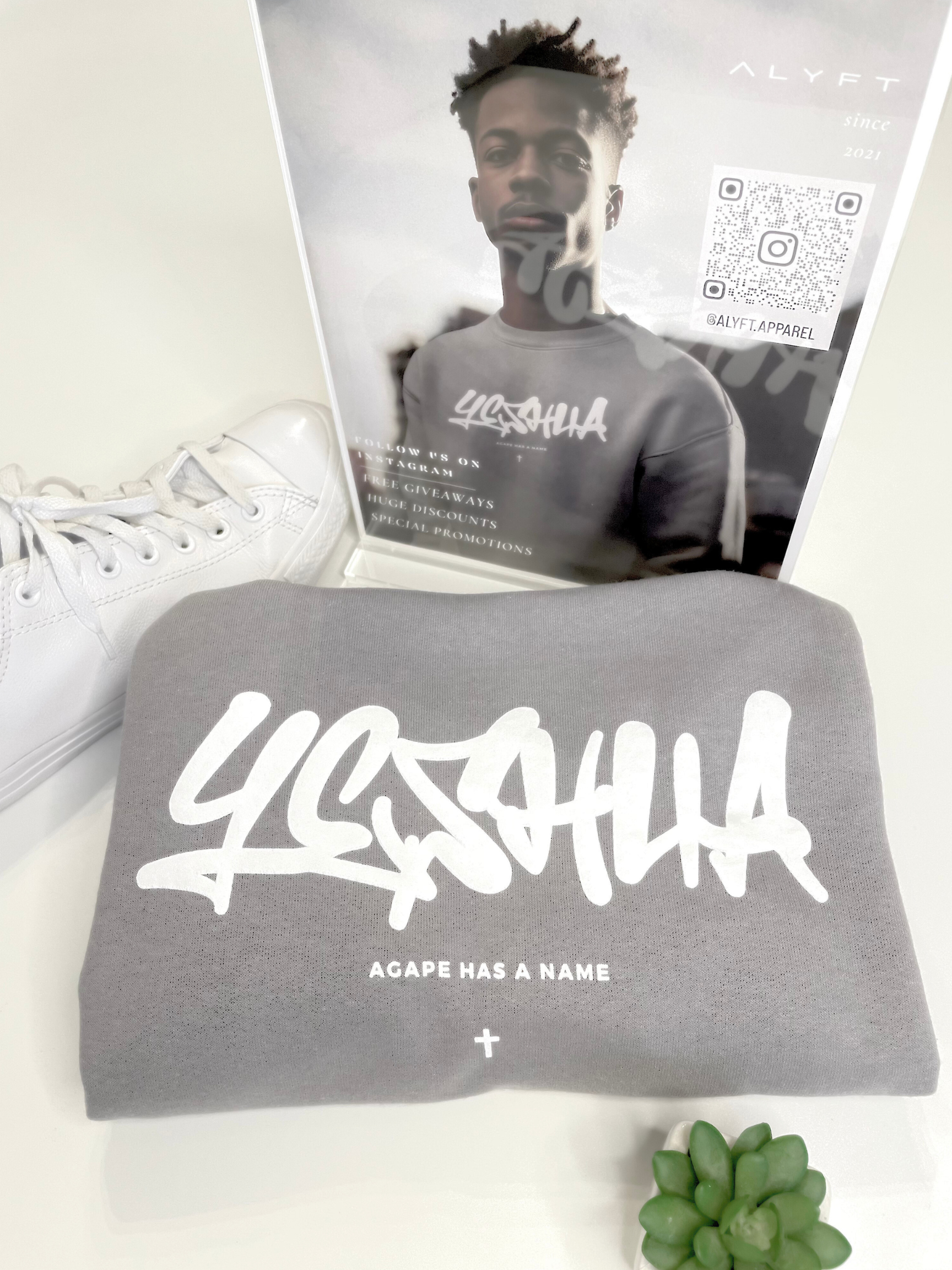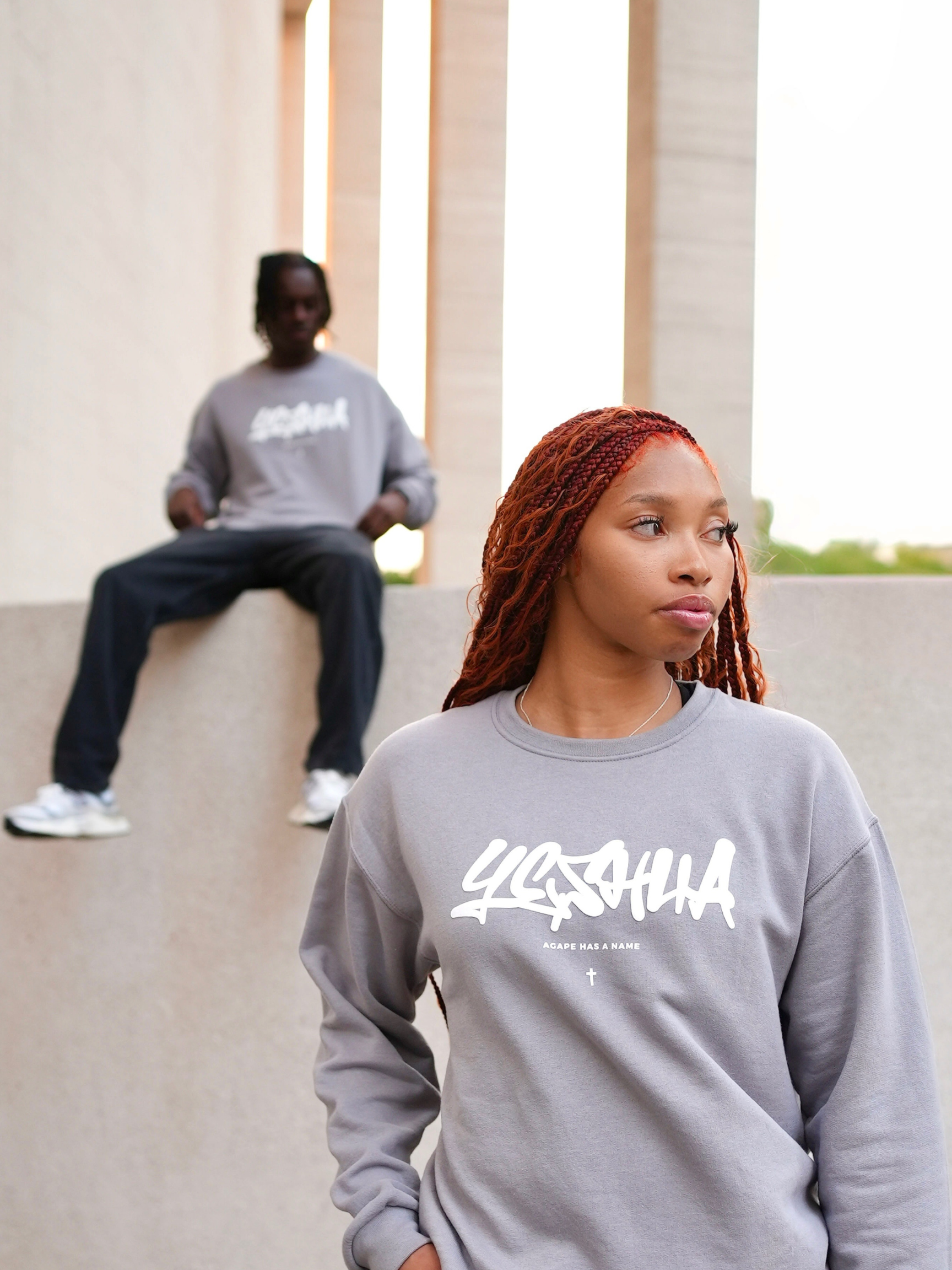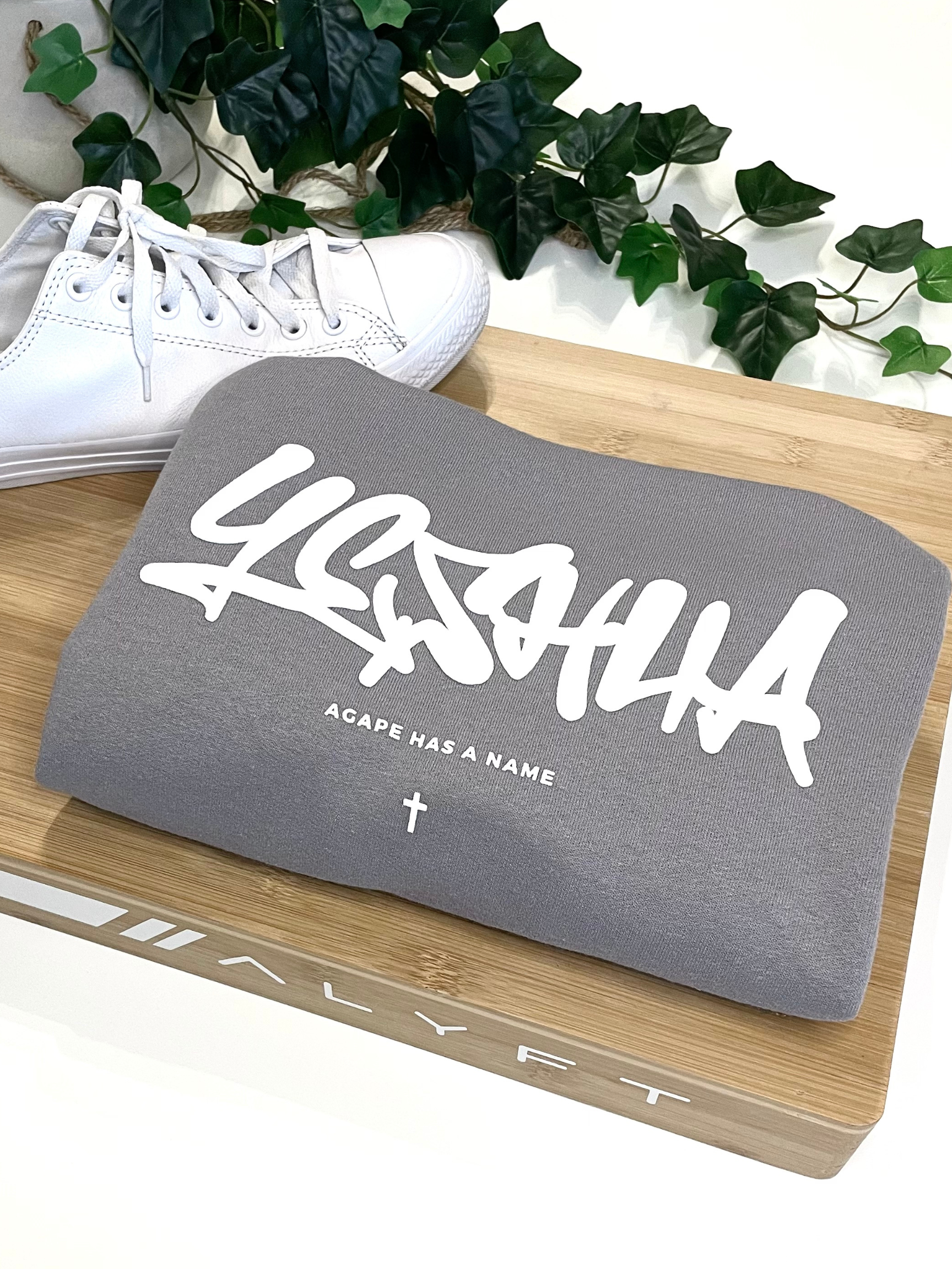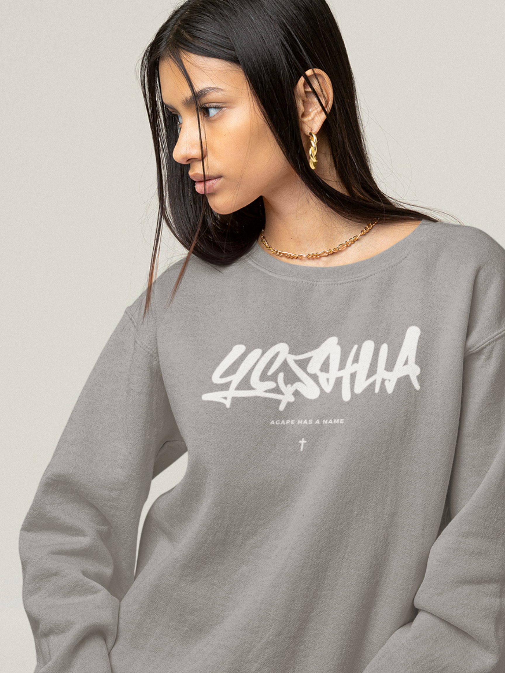 YESHUA x AGAPE - Professional puff print on front Yeshua design. Granite gray colorway on a premium midweight crewneck sweater. Read sizing tips below. There is a love that is the highest form, that is unconditional and would lay it's life down for you on the cross, that's agape love - the love of Jesus. Proclaim to the world that agape has a name - it's YESHUA. Yeshua is Jesus' name in Hebrew, which is the original language of the Bible - Old Testament.