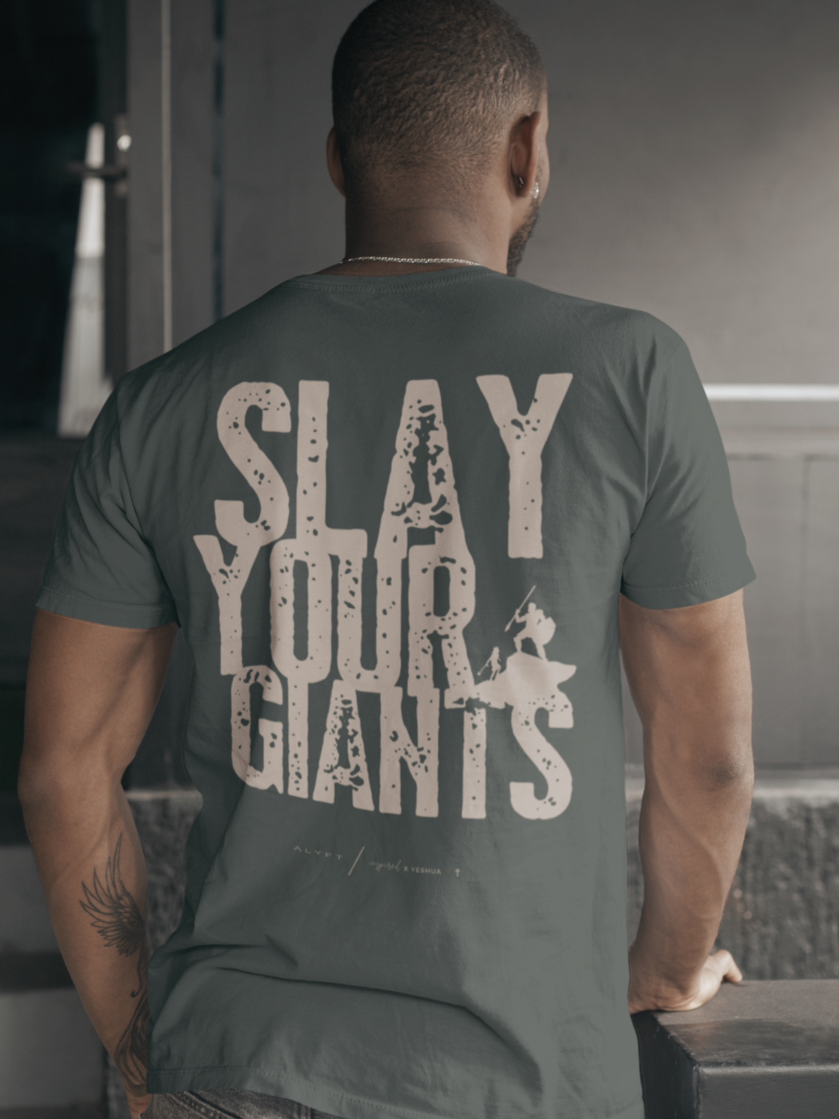GIANT SLAYERS - We all have our giants to overcome, just as young David had his Goliath. Not on our own strength, but by God's strength we overcome and are more than conquerors. SLAY!