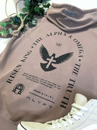 YESHUA - (Industry five-star fabric with first class garment dye in a unique vintage clay colorway.) A complete homage to Jesus, the KING! The Hebrew word for Jesus is Yeshua. (Hebrew was what the Old Testament was first written in.)